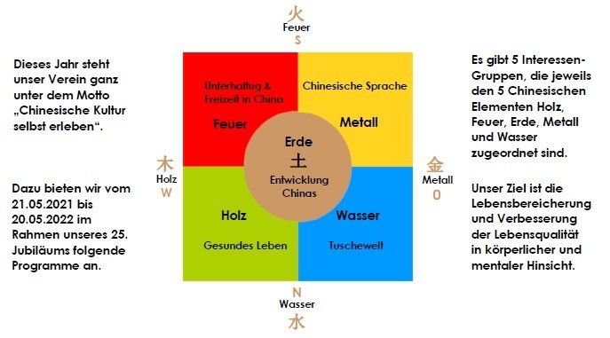 Seit 1996 vermitteln wir durch Vorträge, Ausstellungen, Konzerte, Kurse und gemeinsame Feste und Treffen chinesische Kultur in Deutschland und beziehen bei uns lebende Chinesen mit ein. So nutzen wir im Dialog und beim Lernen beiderseitige Erfahrungen und Fähigkeiten für eine echte Begegnung.